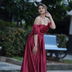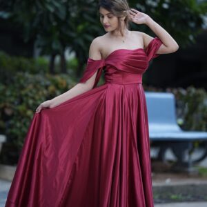 Maroon Off-Shoulder Evening Gown