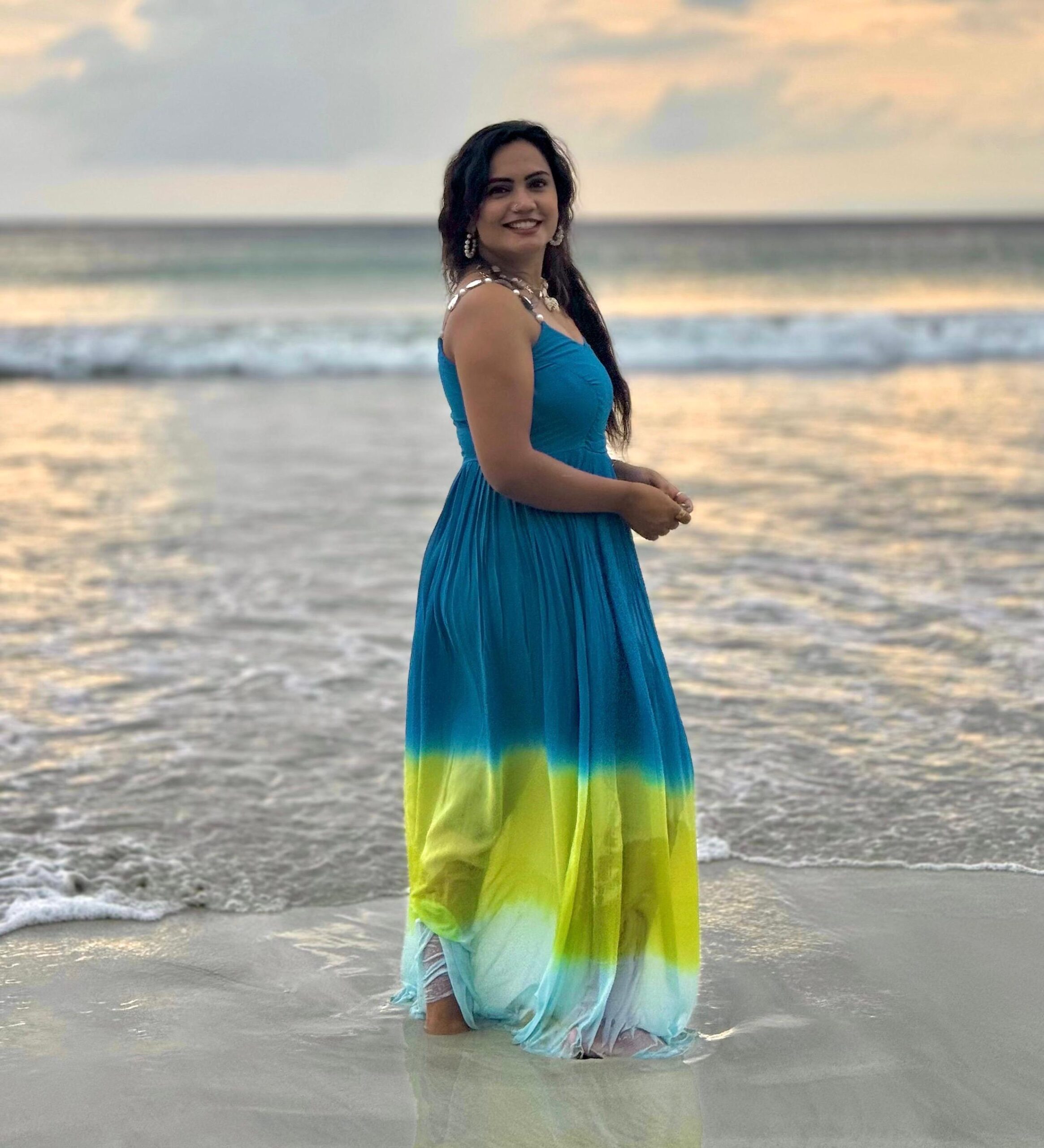 Elevate your beach style with the Devorah Luxe Flared Beach Frock. Crafted in breezy Georgette, it showcases ocean-inspired hues for a versatile and chic coastal look. Dive into luxury and redefine your beach wardrobe with this irresistible frock. Seize the beach allure today!